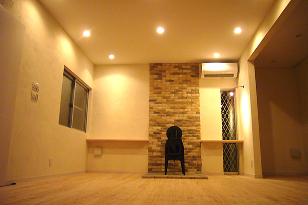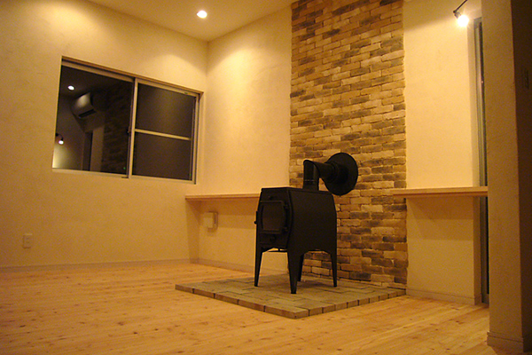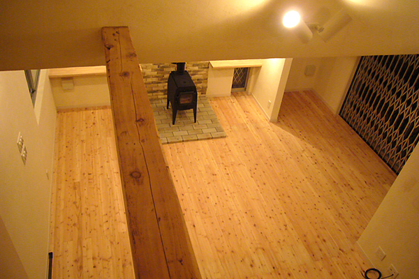 ご主人の希望で、使用する建材は全て自然素材にしたいという事で、壁に珪藻土(けいそうど)、床は松のムクのフローリングに蜜蝋(みつろう)ワックス ※ 塗りとしました。